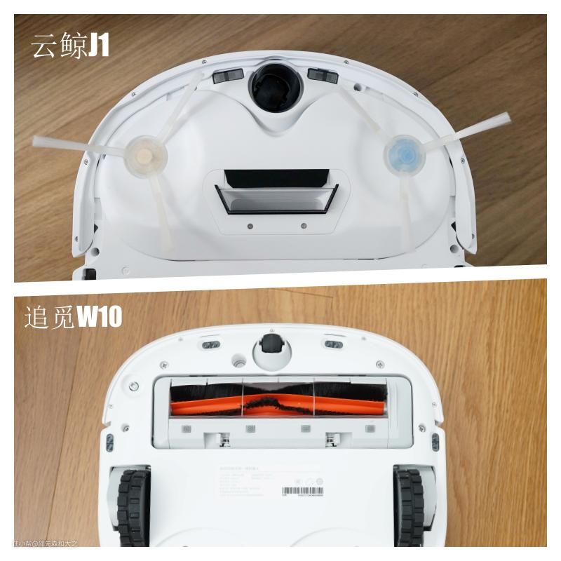 我们来对比下我之前的云鲸J1的扫地模组(需更换)和W10的模组(无需更换),云鲸J1采用了双边刷,小吸入口的设计,而W10采用了单边刷大吸入口的设计,你更喜欢哪个?