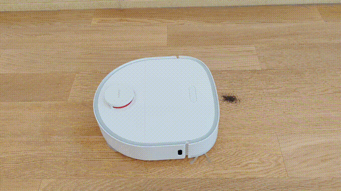 不像传统的扫地机将LDS激光模组放在机器人前方,拖地机基本都是D型造型,将LDS激光模组放在了后方,我猜是因为拖地模组占用了太大的空间,所以激光模组就放在了后面,有碰撞传感器的一面才是前方。刚开始挺不习惯,看久了才有点习惯。
