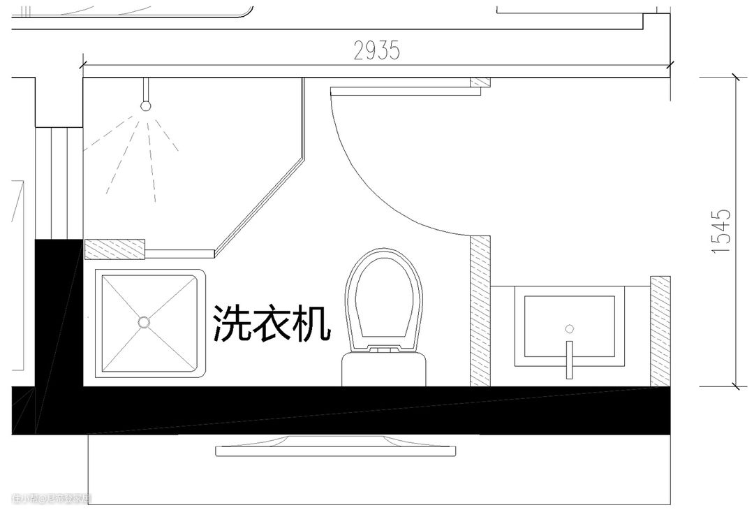 如果我把洗衣机放在次卫,次卫才1.5*2.9米长宽,4.5㎡的使用面积,把洗衣机摆放进去,还是有些显堵的,但是可以采用“洗衣机和干衣机”摞起来靠墙摆放。