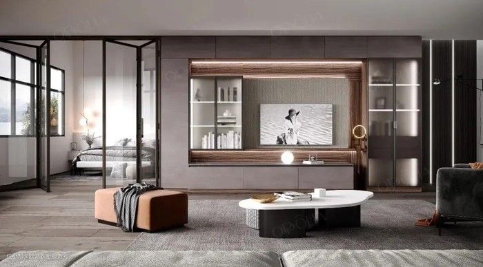 玻璃隔断是近几年比较流行的做法,在进行功能分区时,不会阻碍光线的进入,让整个居室看起来很有延伸感,从而扩大视野。