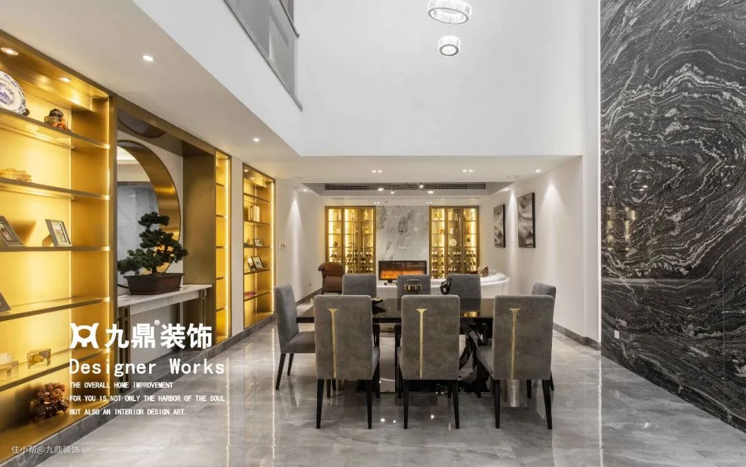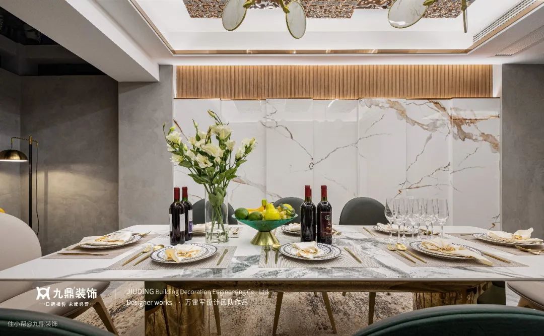 餐厅的灯带与墙面装饰搭配,提高空间亮度,增添用餐的仪式感,唤醒浪漫情绪。