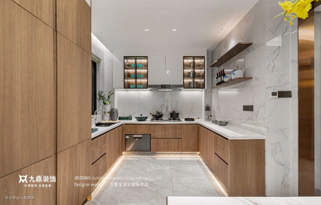 在吊柜下安装灯带,可以减少厨房的照明死角,让备菜过程更加轻松便捷,做菜的心情也会变好。