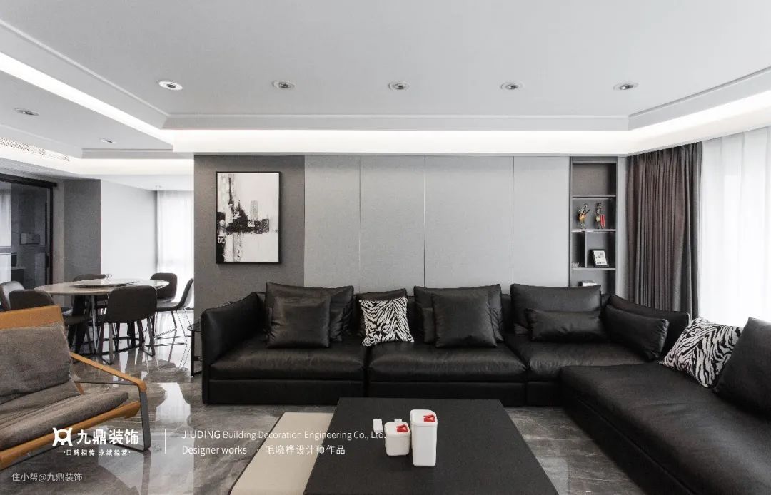天花板灯带与无主灯设计是绝佳搭配,灯带与灯筒实现有层次的光源分布,减少频闪现象,让环境中的光线更为均匀。