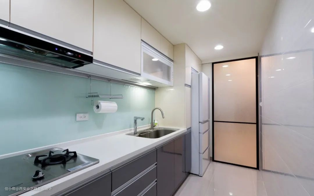 在厨房与餐厅间加装玻璃活动拉门,炒菜时,可阻隔油烟,让公领域空气清新。