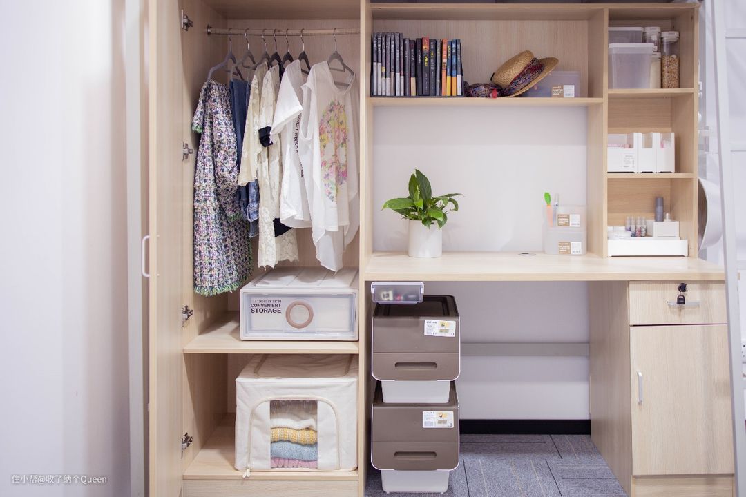 宿舍的挂衣区一般都比较窄,只有50公分,看上去能收纳的衣服少得可怜。