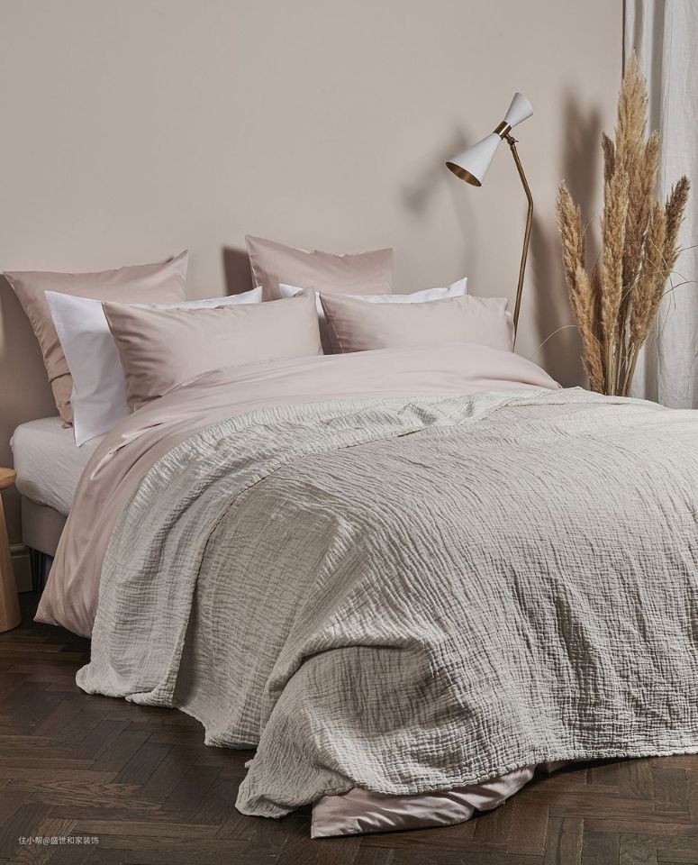 “几乎没有的粉红色可以与柔和的灰色等中性色搭配,营造出一个温暖、平静的空间,在一天结束时放松下来。” '通过铺上枕头、毯子或被子来整理床铺,打造属于您自己的云朵。这不仅是搭配颜色的一种可爱方式,而且还可以增加一个宁静夜晚的舒适度。