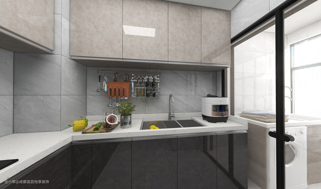 为了保证厨房的操作空间,将冰箱安排在客餐厅中,不仅缓解了厨房的拥挤,也更符合冰箱的使用场景。