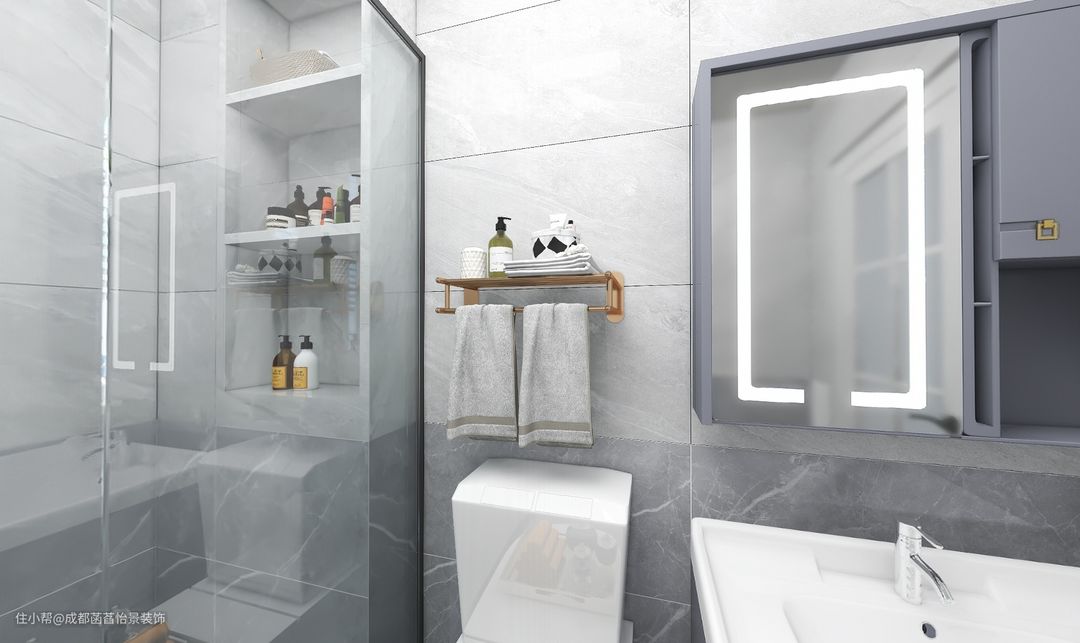 主卫用玻璃门做的隔断,上下不同明度的灰色,为空间增加了一丝的活跃气息,干净整洁!