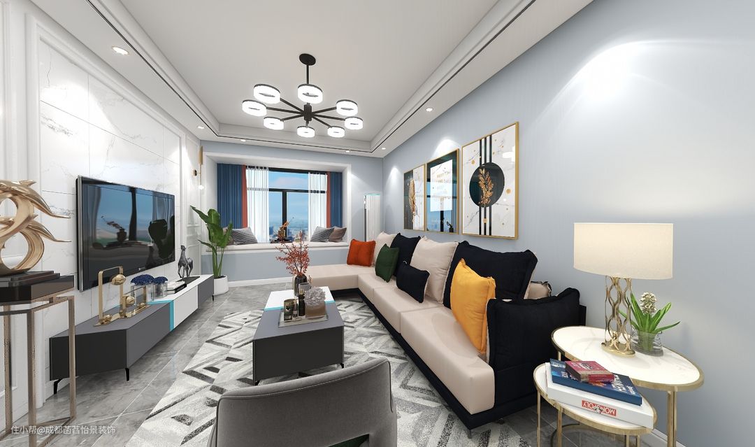 由于客厅的飘窗是不可以拆改的,所以利用飘窗的特质,进行了修正,形成了一个舒适的休闲区,实现了美观与空间利用。