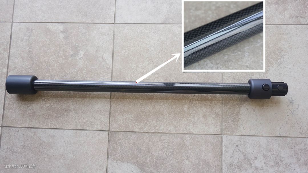 在配件上,还有个比较有特色的是连接杆,目前所有的主流机型,不是用塑料的就是用铝合金的杆子,而米家轻羽吸尘器的连接杆则是碳纤维材质的,不仅比铝合金更轻,而且强度是铝合金的6倍,耐用性更强。而目前碳纤维在日常生活中见到最多的是高端的自行车车架,不过那一个车架价格不菲,而碳纤维的大面积应用,在吸尘器中也是第一次见到。