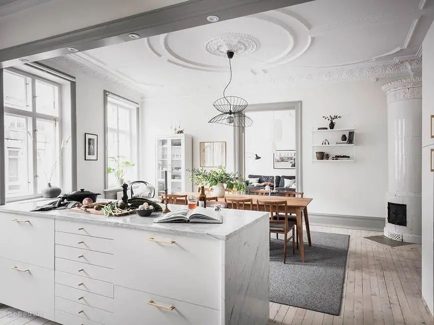 ▼比较华丽的北欧老公寓,墙面上还有木制护墙板