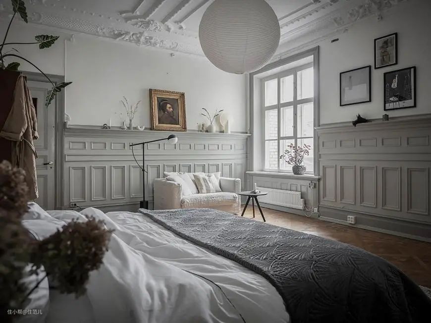 ▼推荐半墙漆和墙面石膏线的搭配,可以强化复古气质
