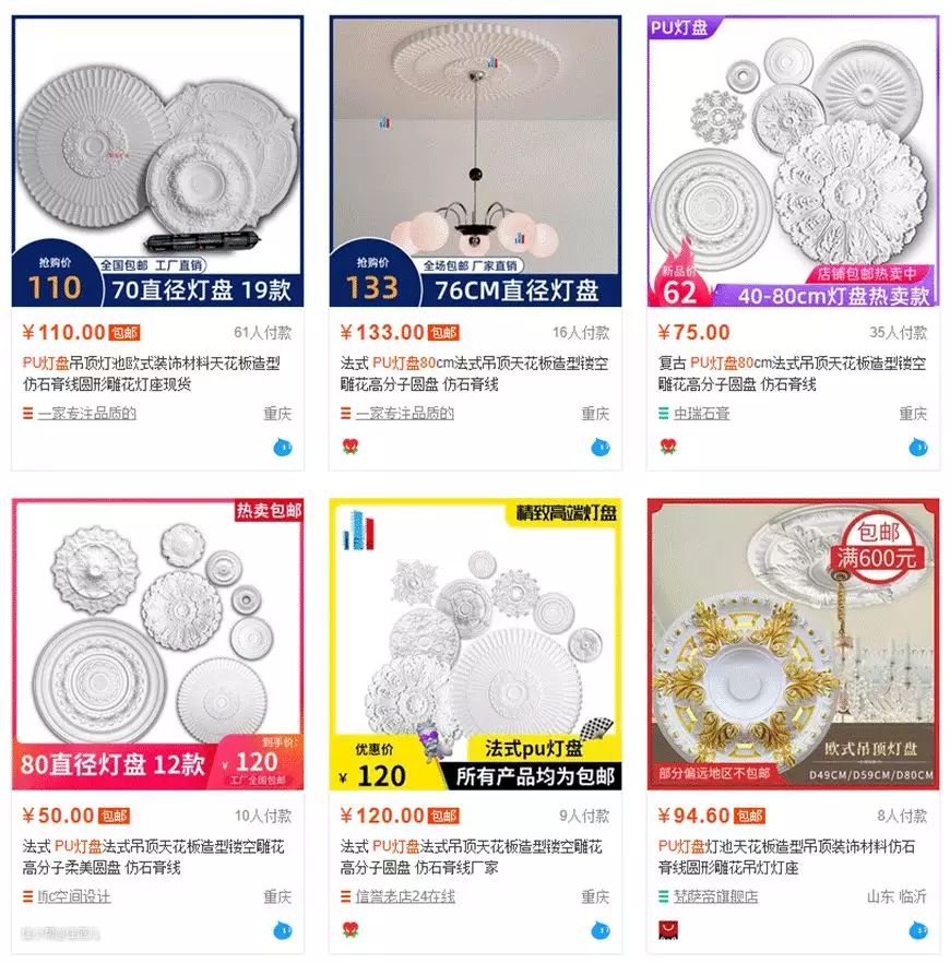 而其他石膏装饰品,建议大家线上购买,灯盘、角花等,线上的款式更多,更精美。