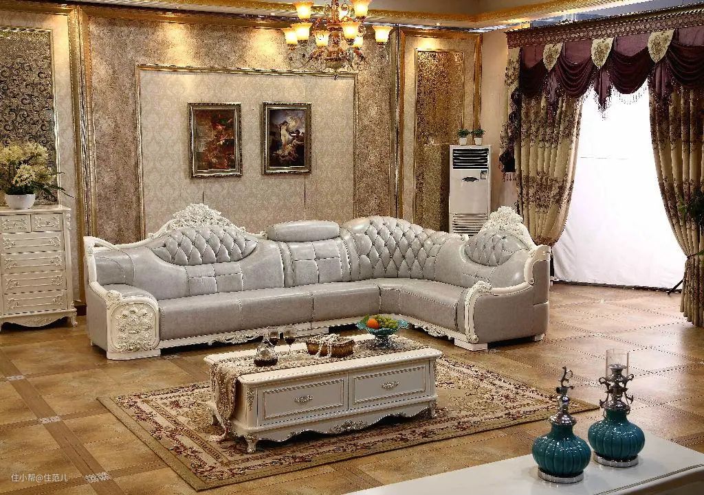 像下图这样,深深浅浅的金色石膏线、不闭合的墙面线条、好几种壁纸,加上造型啰嗦且并不舒适的伪欧式风格沙发,土味十足。