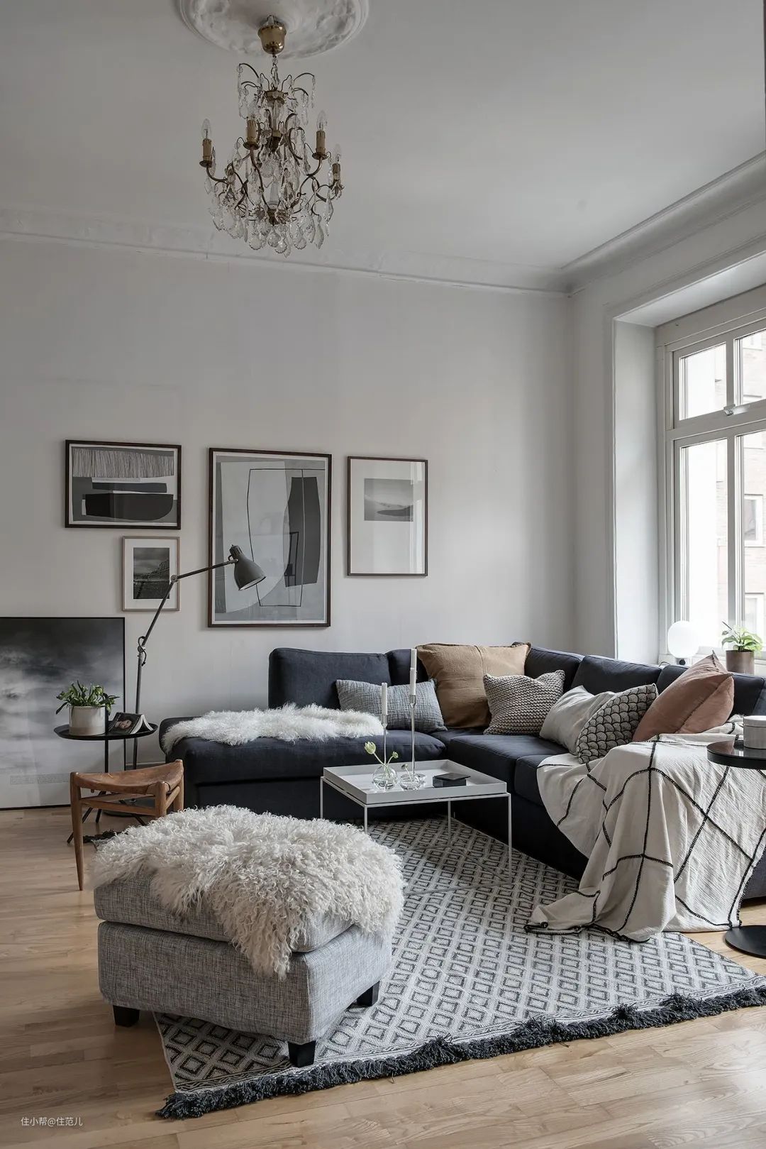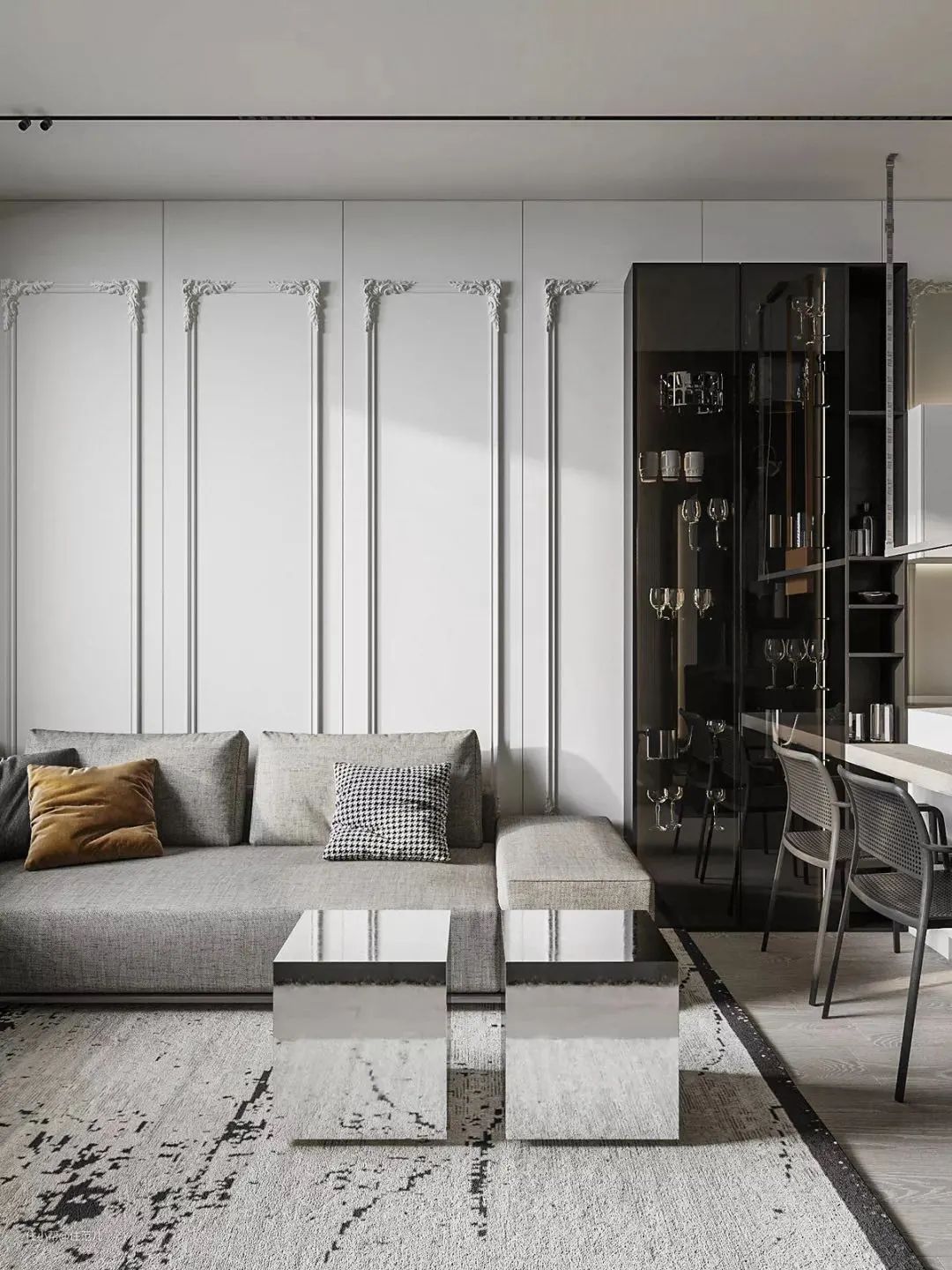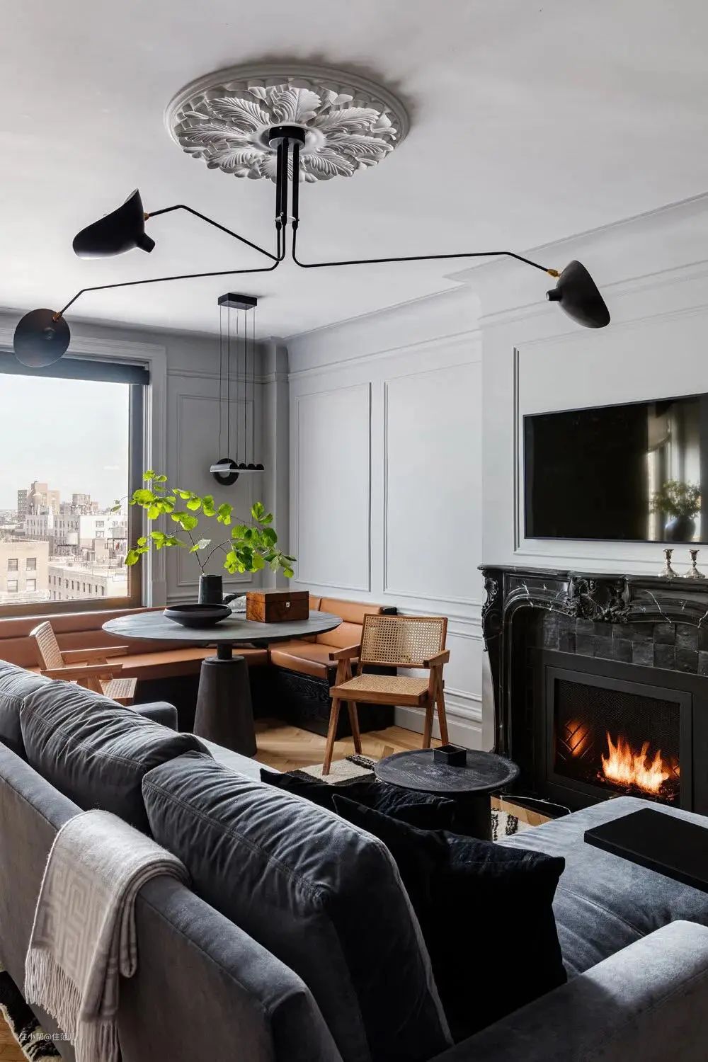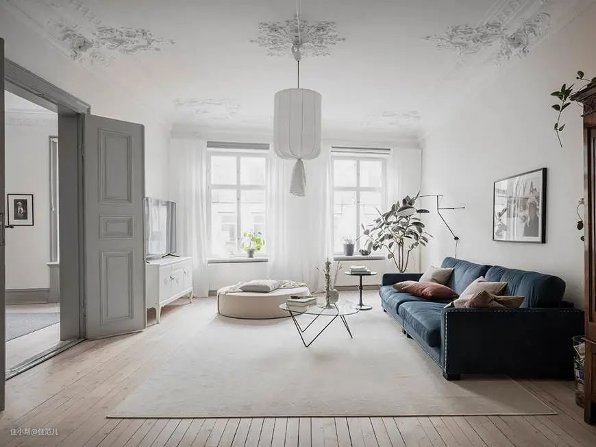 ▼石膏线条搭配角花,细节一下子精致起来。