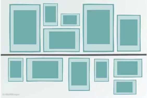 不管1幅还是多幅,找到整组画的中心点,可以计算挂画左右、上下的最佳高度