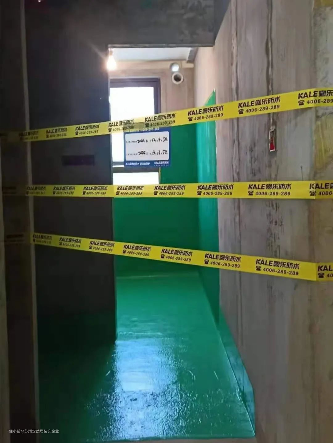 ②防水施工结束等待晾干,布置警示带隔离,防止人为破坏;
