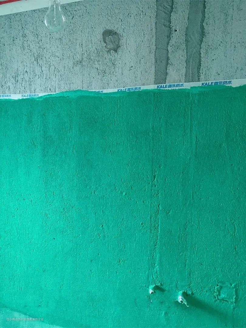 ⑤卫浴间与厨房的隔墙一般都是轻体墙,轻体墙的防水检验是淋水试验,用水管在墙面自上而下不间断喷淋3分钟,4小时以后观察墙体的另一侧是否会出现渗透现象,如果无渗透可认为防水施工验收合格,在此之后,在防水材料面上再做一层保护层,等待干透之后,就可以正常进行装修。