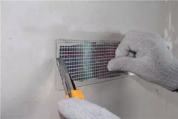 批刮好后对电底盒上的玻纤网进行清理,及底盒清边。