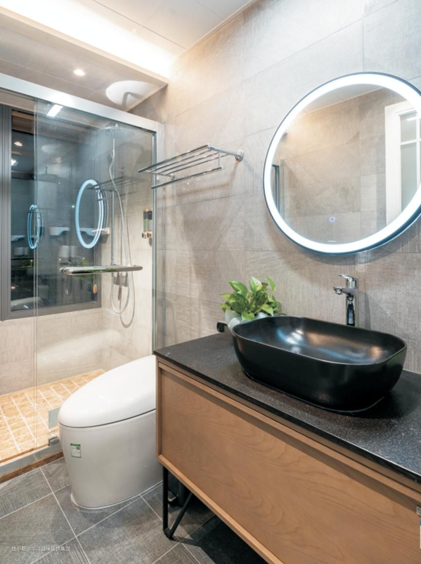 对于一个合格的卫生空间来说,漂亮和美观倒是其次,实用与便捷才是首要的评判标准,这套案例设计的业主是一对白领夫妻,平时上班朝九晚五,疲惫劳累不堪,对于家的设计也是希望尽量做到简洁为主,因此,墙面与地板选用经典百搭的黑灰色大理石瓷砖,构成了主体风格上的同一。