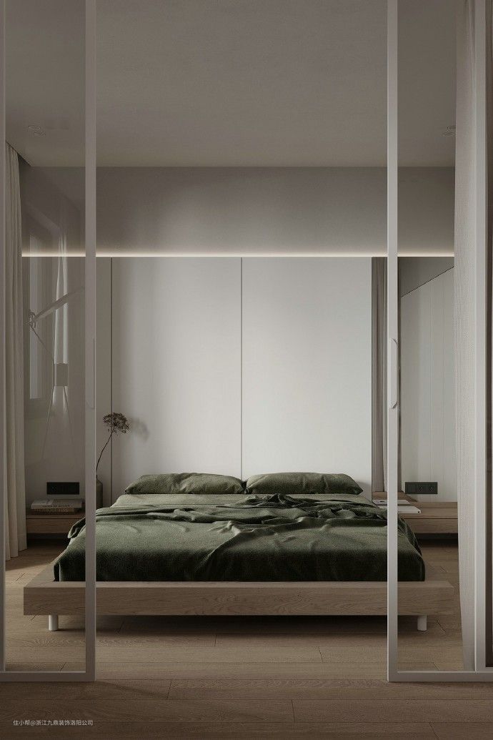 卧室偏日式风格,矮矮的床加上床头柜,舒适与美并存。