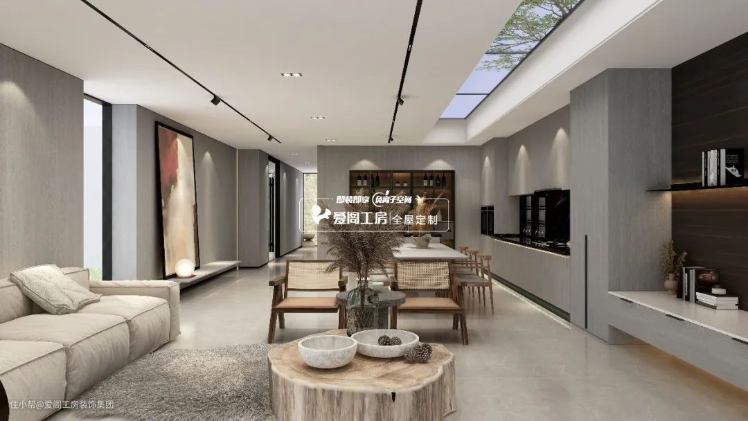 不需要注重隐私性的空间,可采用开放式或半开放式设计,做软隔断或半墙隔断,减少空间与空间之间的遮挡,最大化引入光线。