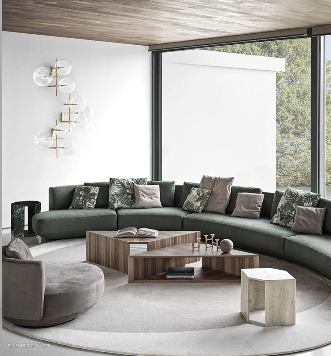 有电视墙的时候,沙发位总是对着电视。没有了电视,可以让沙发围起来,位置更紧凑,交流更方便,可享受独立的休闲空间。