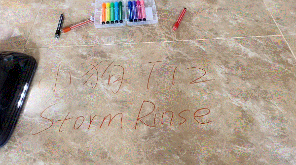 像这种风干的彩笔字,小狗T12 Storm Rinse擦地吸尘器走一遍就搞定。总的来说,T12主打高端,可前吸后擦同步完成,T11更适合入门,日常简单清洁够用了,大家看个人预算选择。