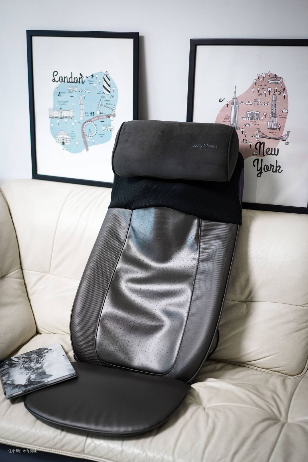 说是一套DIY按摩椅神器,实则包含腰背和腿脚两个按摩器,可一起购买也可分拆。顶上这款,uJolly2 Smart,别号智能背乐乐2,从外表看就是一张独立按摩椅的椅背,小小的身板却可以覆盖颈、肩、腰、臀四个部位的深度按摩。