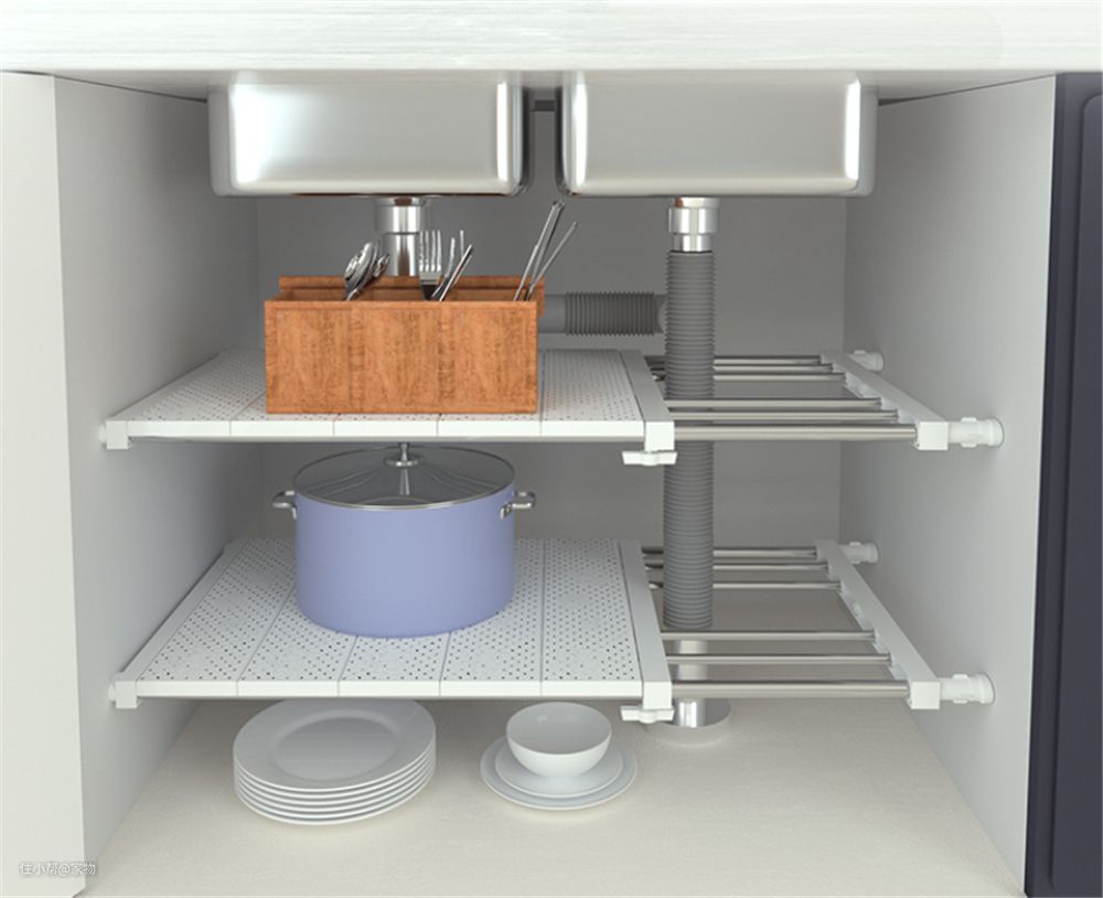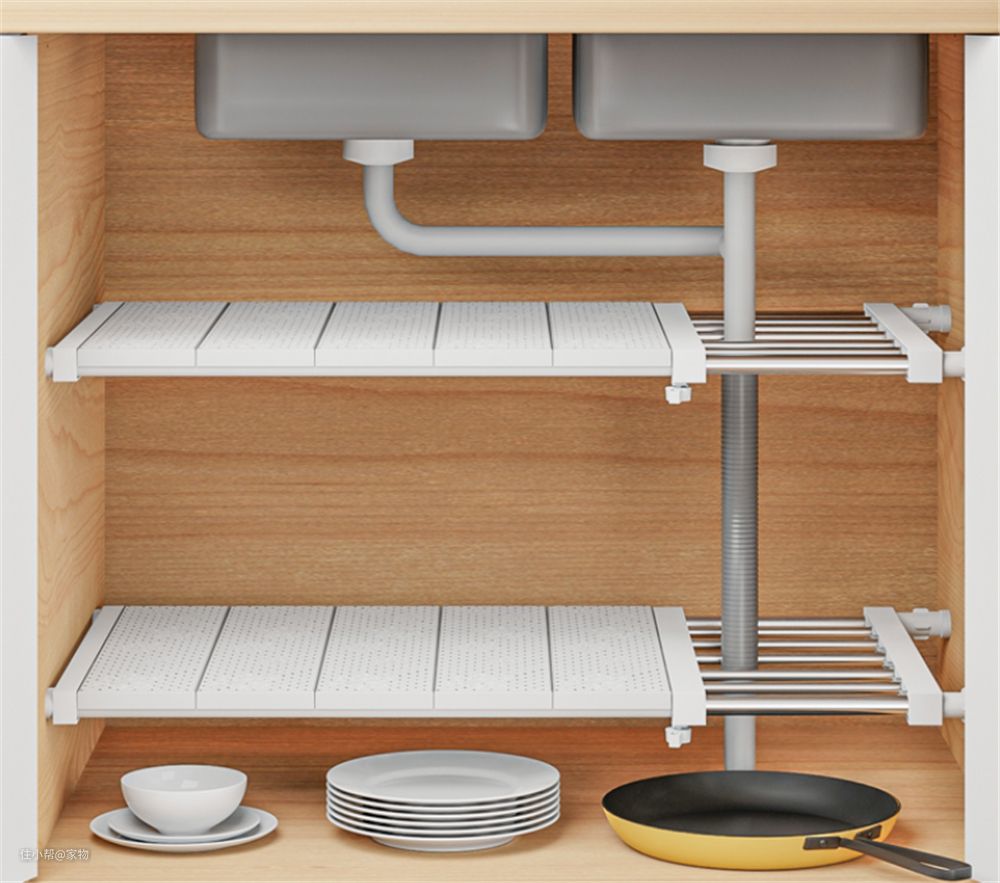 在各种橱柜、吊柜中,如果担心纵向空间不能合理利用的话,都可以用它来分隔空间层次,填充冗余空间。
