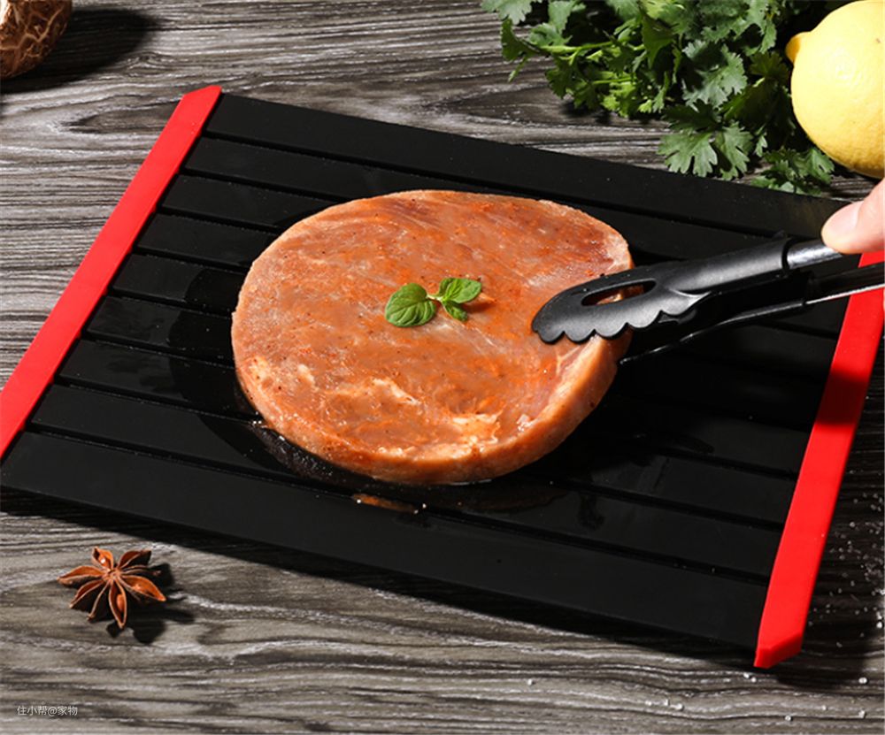直到后来用过才发现,它的这种铝合金材质有着超强的传导性,用之前板子过一遍温水,把肉放上去以后,基本上一大块肉半小时以内就能解冻,真的是很方便又很天然了,瞬间圈粉。