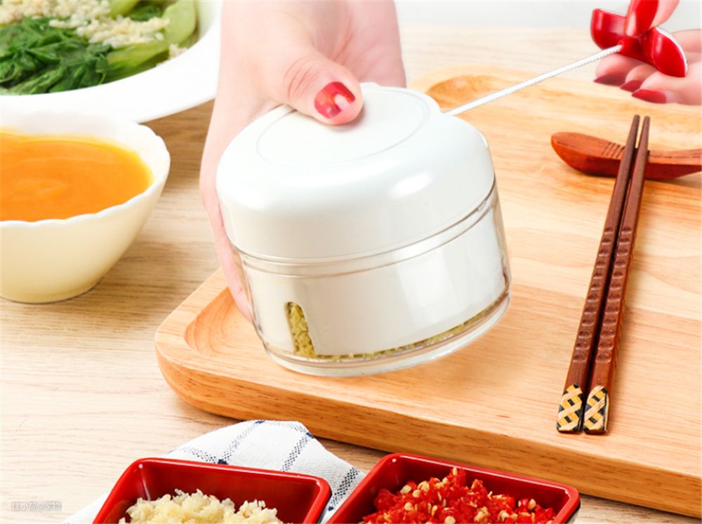 所以,更推荐大家试试这种小型的绞蒜机,它其实类似小型绞肉机,不过是物理操作的,只需要把蒜放进去,抽拉拉绳即可!是不是超方便?