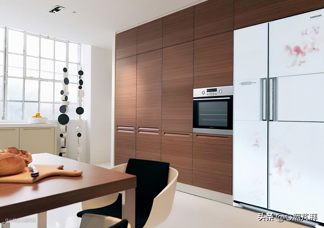 看上图想必不用我多说,大家应该都懂啥意思。。现在冰箱不像以前白色调居多,反而是金色、黑色、灰色这种多,偏偏很多家里是北欧灰岩极简风,白色装修风格的一抓一大把,那如何让冰箱做到给装修添彩就是你要考虑的了。