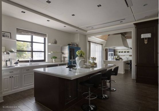 美式厨房最大的特色是开放,厨房是开敞的是生活的一部分,厨房的功能十分强大,包含了餐厅,起居室,及会客室的作用,家里的大多数的人际交流都在厨房,便餐区进行,这两个区域会同起居室起到一个连接作用,成为一个家庭生活的重心,从装修风格来说,美式厨房最大的特点是简单,自然舒适。