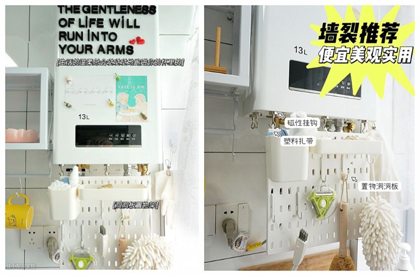 2)磁吸收纳,让小物件都吸附上墙或者冰箱一侧,不占台面空间,保持整洁干净;