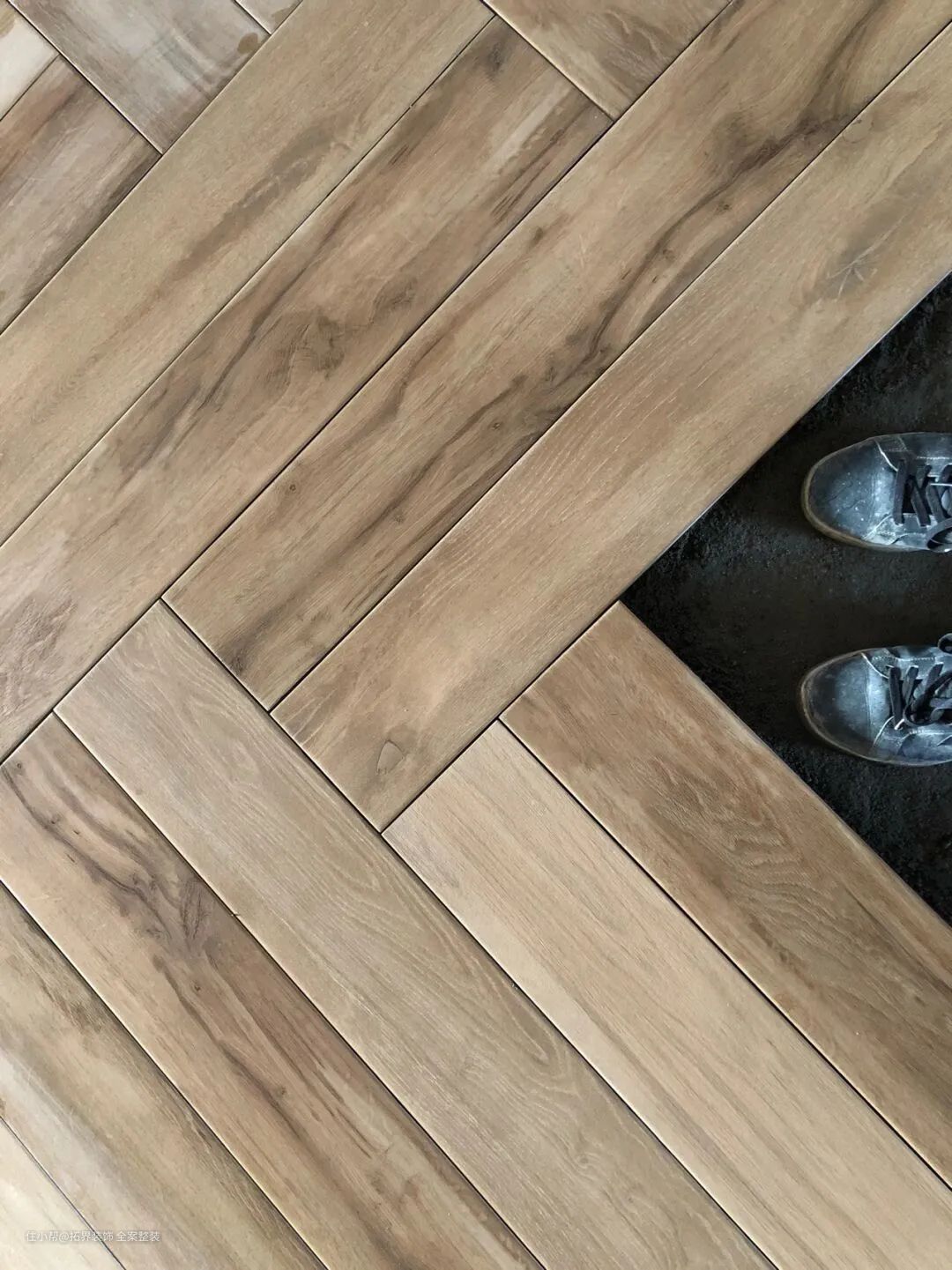 通过四块长条形木板两两一组呈90°拼贴,虽然一看会有点乱,但其实是乱中有序,一般会运用在咖啡店或者户外花园。人字拼既适用于木地板,又能适用于瓷砖、文化石等,视觉效果也是杠杠的。