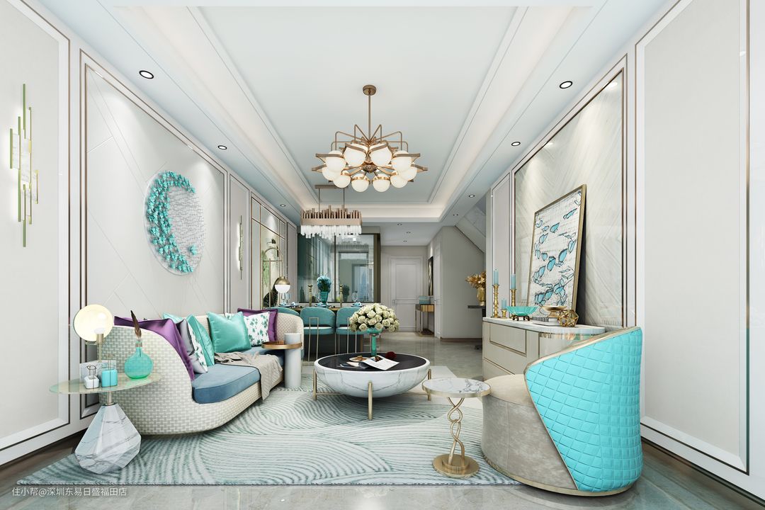 110m²四居室花21W装Tiffany蓝浪漫简欧风