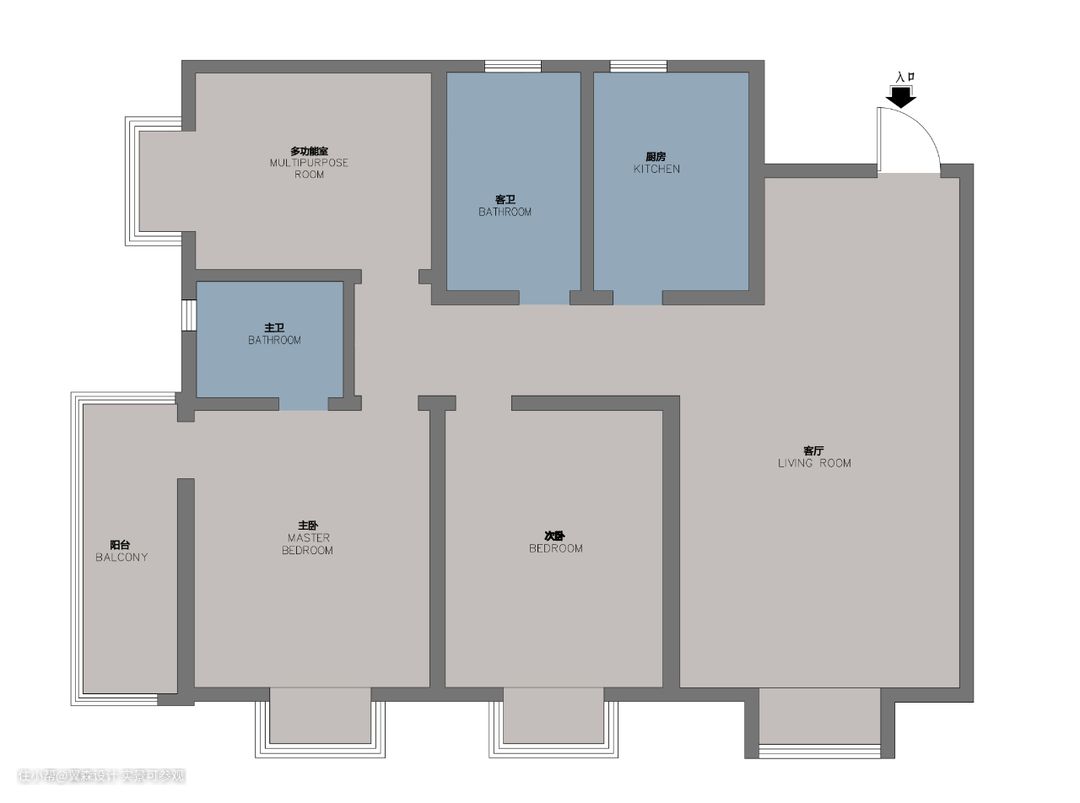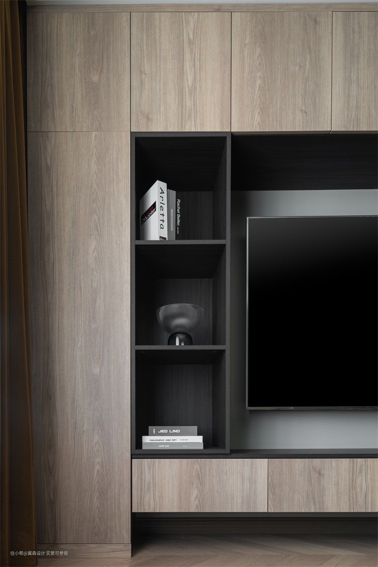 量房阶段,我们发现屋内收纳空间不足,在二次改造时,根据尺寸定制整面柜体,公区收纳大大增加,可实现空间0杂物,更简洁大方。