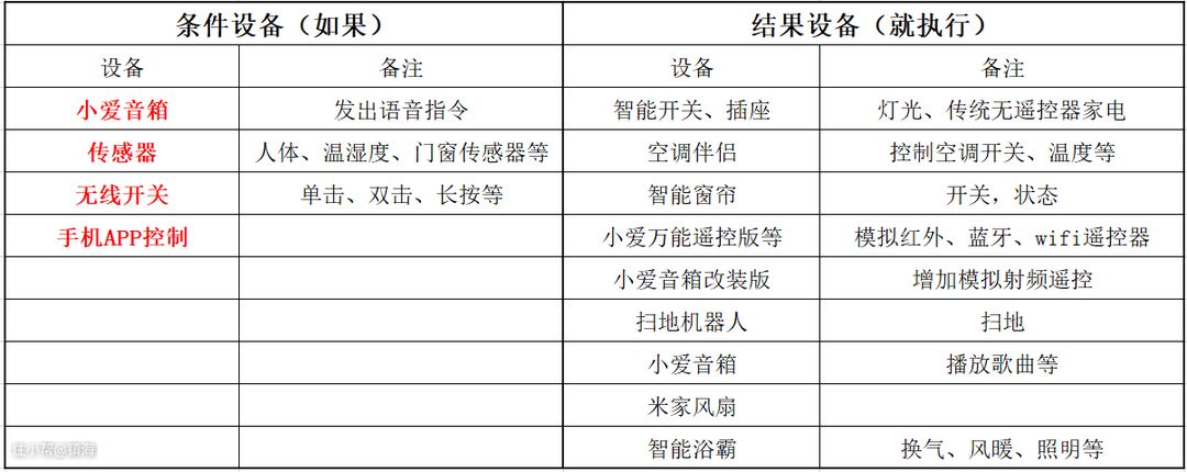 米家智能家居有四种控制方式(看下面的条件设备),看下面这图,小爱(语音)只是其中的一种