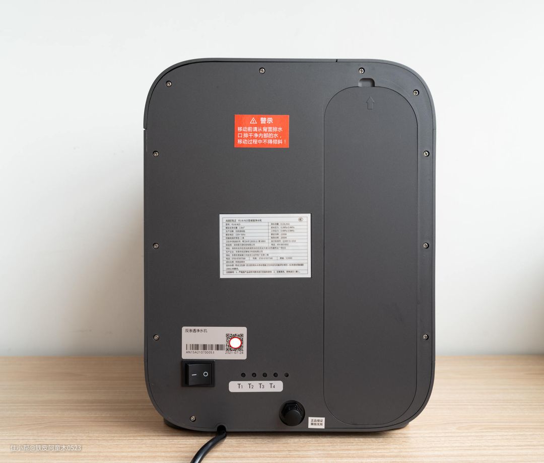 这款净水器总外观尺寸为270mm*340mm*325mm,总体来讲,外观大小适中,不管是放在厨房台面上,还是客厅的茶几、卧室的床头柜上,都能轻松摆放下。
