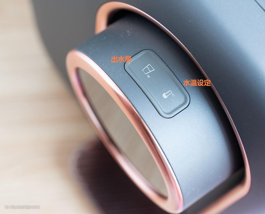 在触屏上方,分别设有两个按键:出水量、水温设定。
