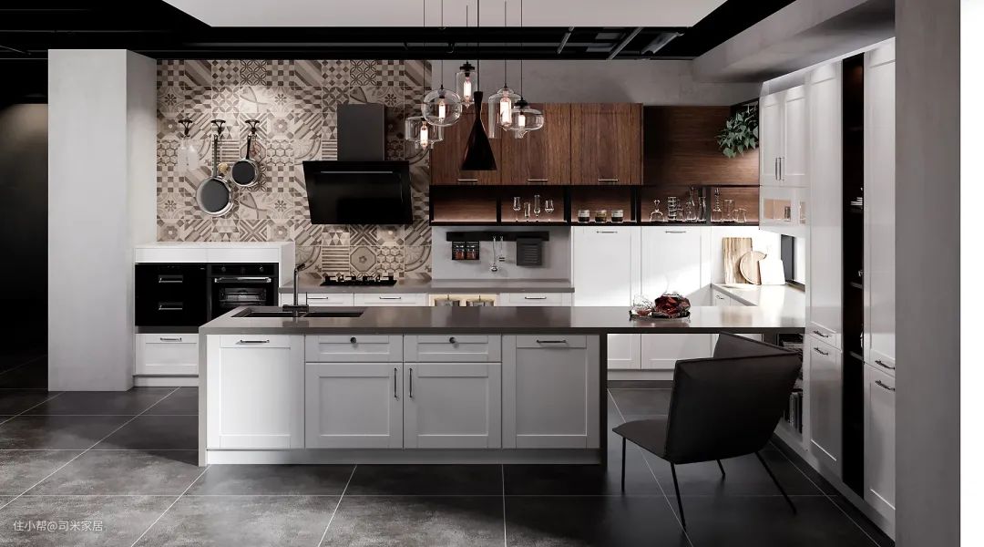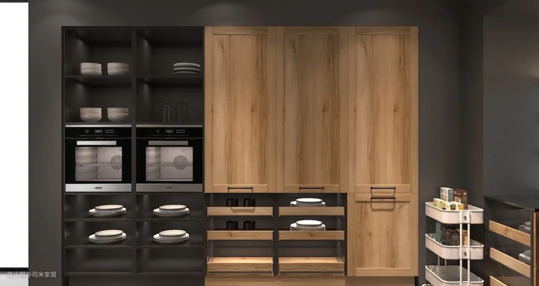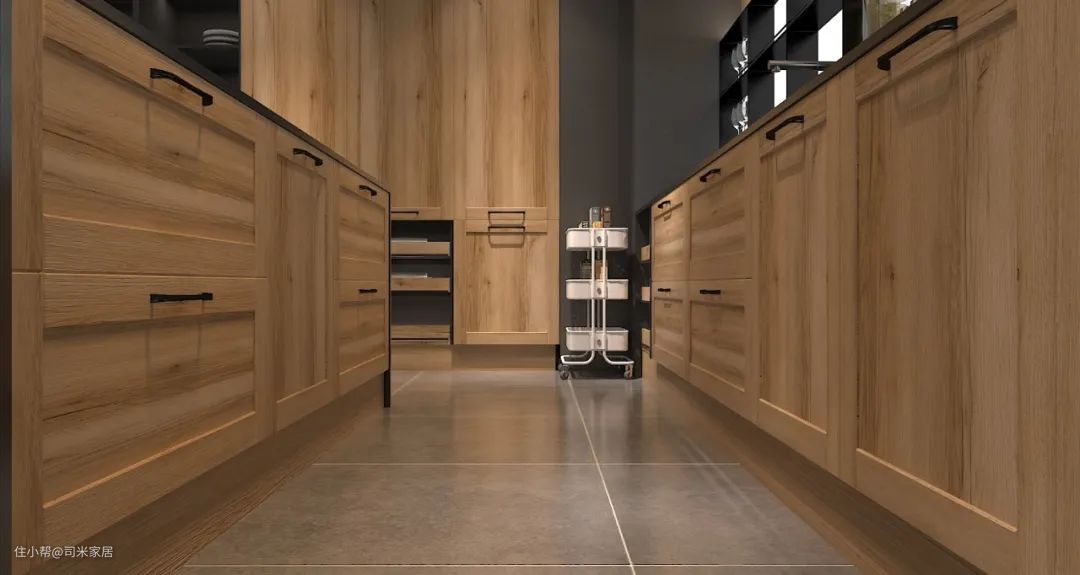 阿萨橱柜采用自然肌理的原木加上高级灰调营造一种自然而舒适的北欧高级感,干净大气。