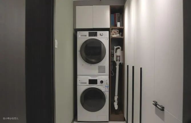所以,洗衣机和烘干机的尺寸和摆放位置,最好在水电改造时就要考虑进去。