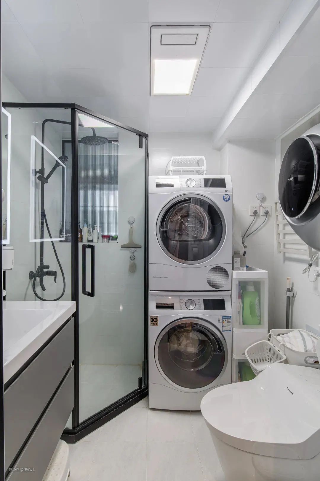 采光不足,阴暗潮湿的低楼层,非常适合洗烘套装。与其让衣服在阴暗的角落发霉,倒不如直接省去晾衣服这一环节。