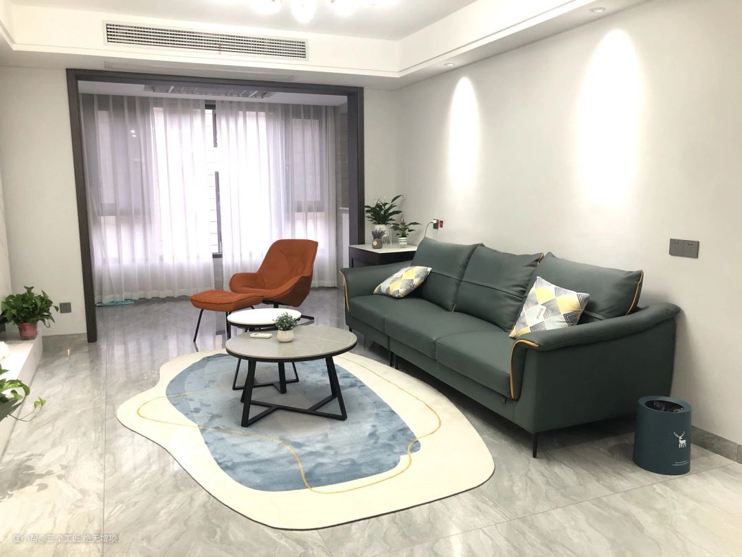 家具进场后,越来越像一个家,让人特别喜欢。沙发的茶几风格还不错,沙发坐起来很舒服,沙发的价值也让人喜欢。尤其是咖啡桌下面有地毯,更有档次,效果更漂亮,更有层次感。顶面安装吊顶和中央空调,但不经常打开的灯带被废弃,所以没有灯带更合适。到时候墙上可以挂装饰画,效果会更完美。