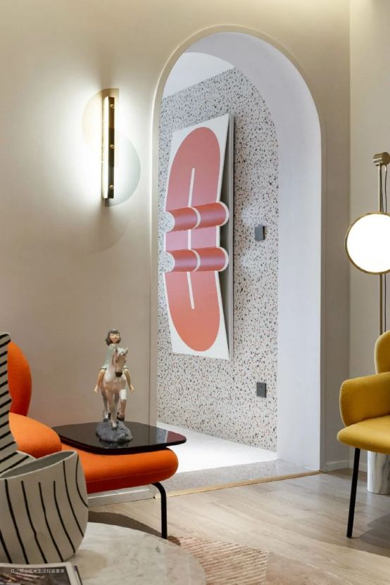 在空间有限的项目中,没有那么多空间来创造拱形门设计,我们就可以利用视觉“假象”来突出拱形门,在墙体彩绘一道拱形门,搭配不同色彩能让拱形门更具装饰性。相对来说墙绘也更灵活,想要啥样的拱形门咱就画个啥样的,费用也不高。