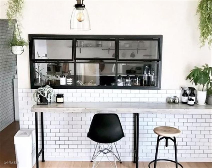厨房和客厅之间最适合开窗,小小一扇窗户,能让一家人互相看到彼此,沟通互动,提升居住幸福感。
