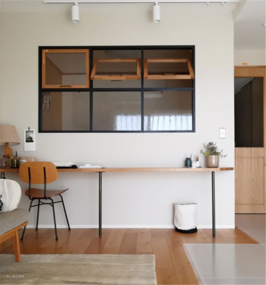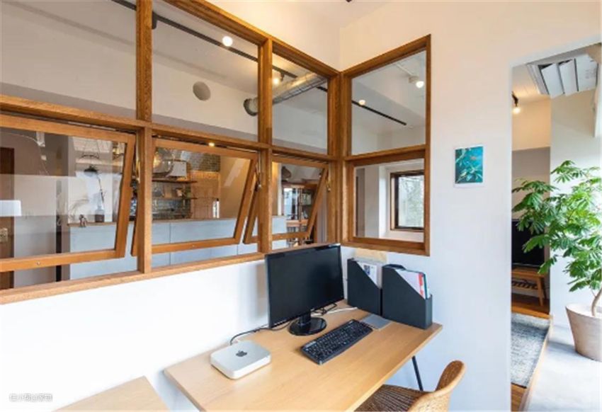 国内很多户型中,书房面积都比较小,采光也差,很适合做开窗设计。半墙+开窗,既提升颜值,又实现了小书房的空间扩增,一举两得。