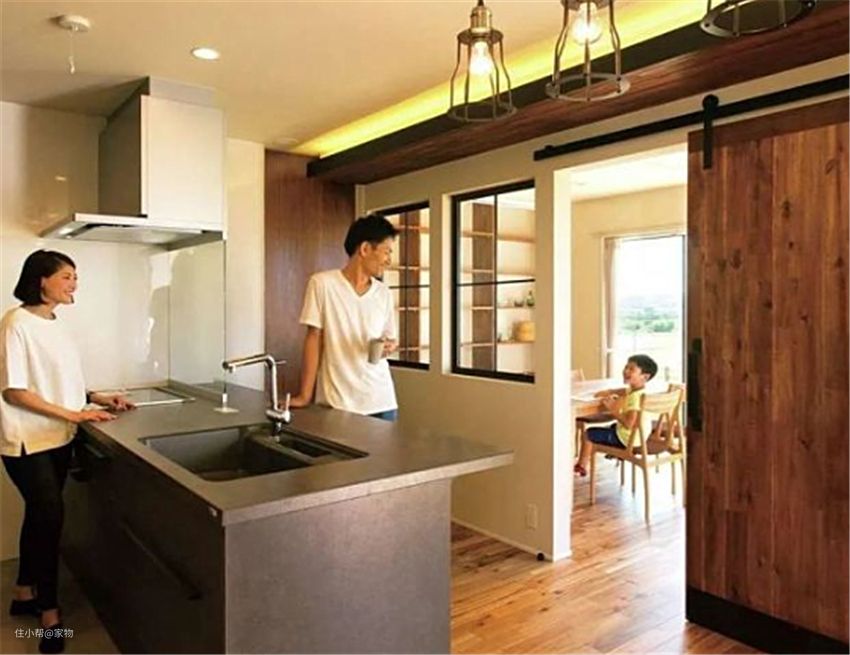 仔细观察不难发现,日本人居室内的开窗大多是在厨房和客厅之间,这是为了方便主妇在做饭时,和家人保持交流,加强互动沟通,做饭其乐融融。