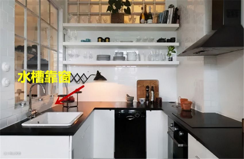 仅在墙面开一扇小窗户,不用担心油烟污染,实在有这个顾虑的话,可将水槽区域设计在开窗一侧,减少油烟入室。